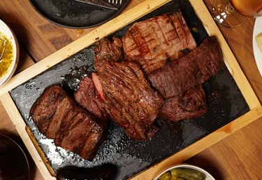 Disfruta de cortes de carne argentinos a la parrilla, servidos de forma continua y en su punto justo. Acompáñalos con vinos seleccionados y bebidas que realzan cada bocado. Completa tu experiencia con guarniciones y ensaladas frescas, ideales para equilibrar los sabores, y déjate tentar por nuestros postres caseros para cerrar con broche de oro.
